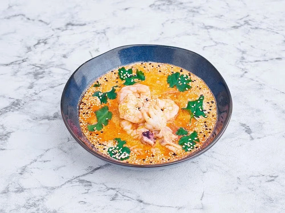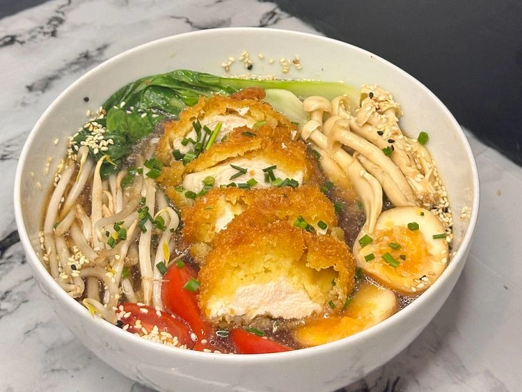 - Ramen z kurczakiem – delikatne kawałki kurczaka w aksamitnym bulionie, który zachwyca swoją lekkością i aromatem.