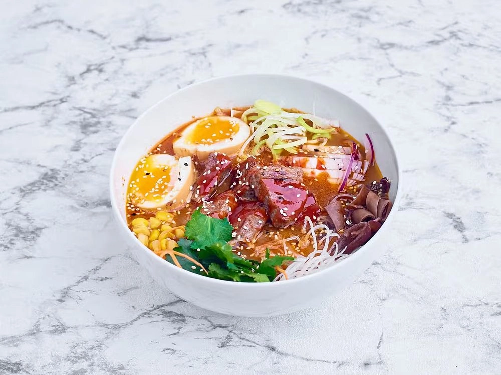 - Ramen z wołowiną na ostro – dla miłośników pikantnych dań, idealnie doprawiona wołowina w gęstym, aromatycznym bulionie.